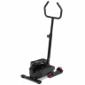 Представляем новую модель Challenge ProMAX популярной серии эллиптического тренажера с функционалом степпера. Тренажер Challenge ProMAX имитирует восхождение в гору под углом 40° и высотой шага 22 см, и нагружает больше различных групп мышц, чем классический эллептик или степпер. Сбалансированный маховиком весом 7 кг (инерционный вес 10 кг). Механическая модель с колодочной системой нагружения и ременным приводом обеспечивает практически бесшумную работу тренажера во время тренировки. Изменение колоочной нагрузки происходит с помощью механического регулятора на стойке, всего 8 положений регулировки. Большие педали с бортиком и нескользящей поверхностью для надежной фиксации ноги практически любого размера. Удобные изогнутые поручни оригинальной формы с мягкими накладками.  Модель оснащена компактной консолью и отображает следующие параметры тренировки: время, скорость, калории, пульс и расстояние (относительная величина расстояния восхождения в гору) Консоль выполнена в форме держателя под планшет или смартфон. Удобно прослушать трек или посмотреть любимое видео во время тренировки. На дополнительном поручне установлены датчики пульса с отображением на дисплее. Держатель для бутылки на стойке тренажера. Для удобства перемещения предусмотрены 2 транспортировочных колеса в передней части тренажера. В странах Европы модель эксклюзивно поставляется под маркой Hummer Sport AG (Германия).